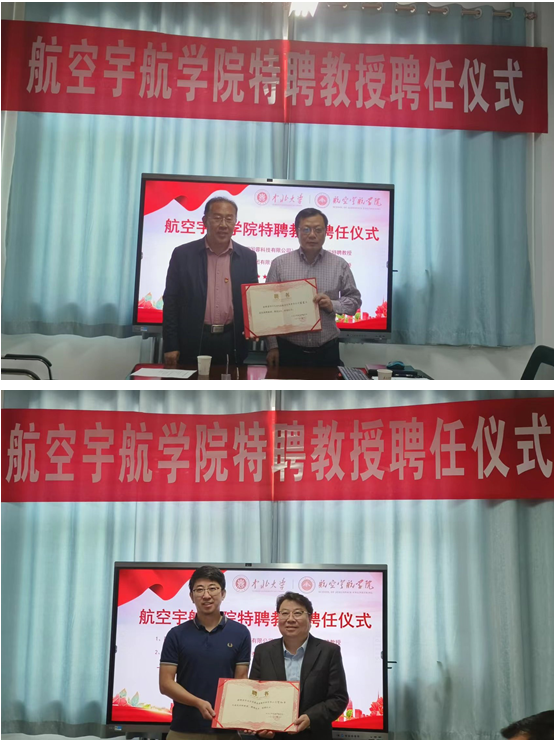 在108会议室举行特聘教授聘任仪式。副校长苏铁熊、校办公室主任张胜利、国内交流合作部部长刘国东、学院领导、系主任出席,党委书记罗建国主持,苏铁熊副校长和李京阳院长分别为苗东、贺和平两位校友颁发了91自拍