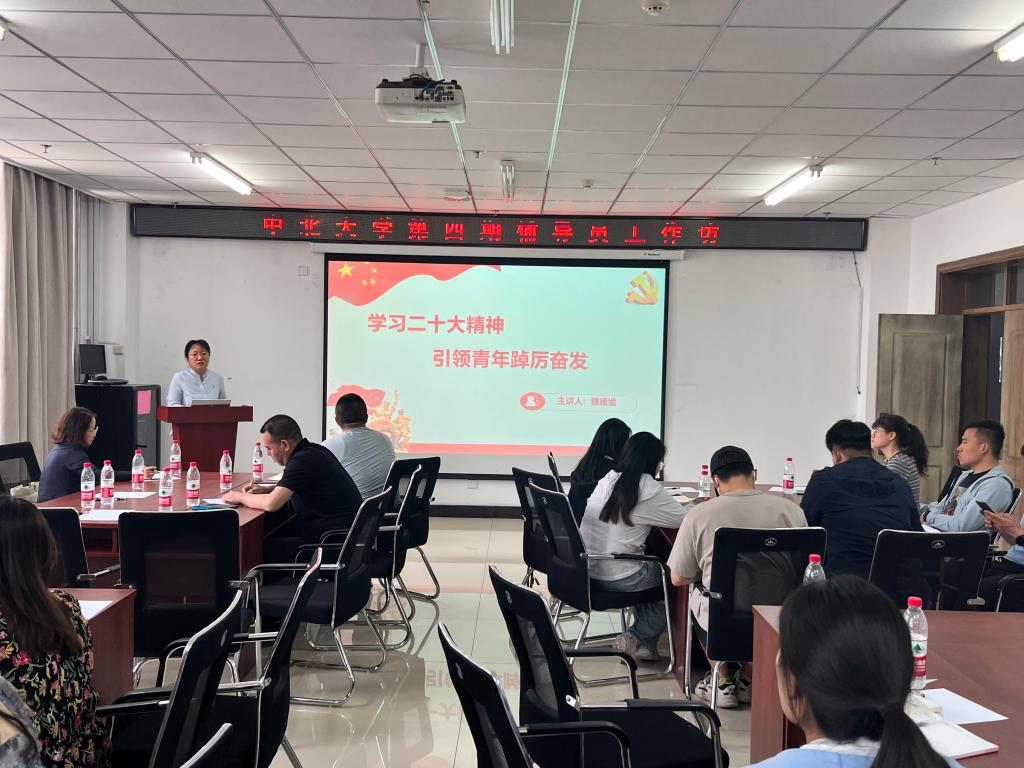 理论学习环节,信息与通信工程学院党委副书记魏媛媛以“学习二十大精神、引领青年踔厉奋发”为主题进行了理论领学。她讲到,党的二十大精神对引领青年成长成才具有重要意义,要以促进学生“听、信、行”,激发学生踔厉奋发的精神动力作为开展思想政治教育工作的价值旨归。她强调,辅导员要在学有所“思”、学有所“悟”、学有所“得”和学有所“行”五方面下功夫,筑牢思想信仰、永葆担当精神、练就过硬本领,在新时代的赛道上跑出辅导员的“加速度”。魏媛媛着重从提升学生认知力,筑牢党性思想根基;培育学生积极情绪,指引青年勇于担当;淬炼学生意志,激励青年敢于吃苦;激发学生内在动力,引导青年主动作为四方面介绍了自己的工作经验和学院的具体做法 。