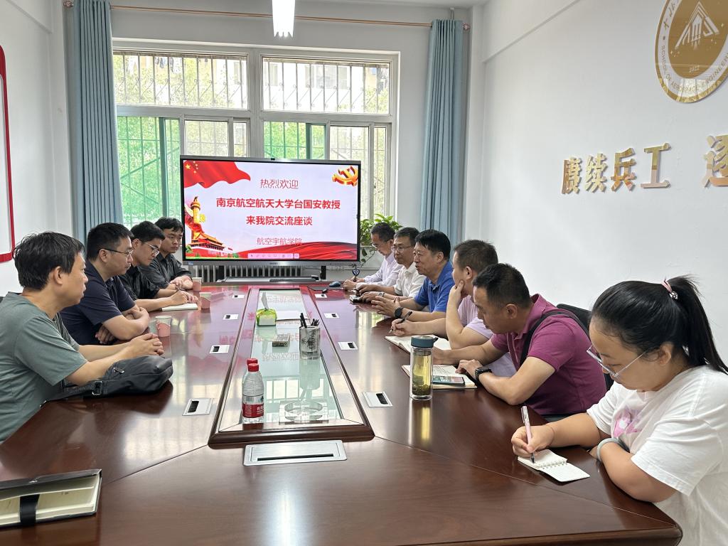 2023年9月8日,南京航空航天大学台国安教授一行来我院进行学术交流。台国安教授围绕纳智能材料器件,针对硼烯、石墨烯、硫化钼二维原子晶体材料的构筑以及光-力-电探测器件性能调控研究等方向,与学院教师在10号楼108会议室进行了学术交流座谈。学院领导罗建国、徐鹏、史瑞根及系主任、副主任等老师参加座谈,罗建国书记对学院学科方向和人才情况进行了介绍,徐鹏副院长针对学院学术团队研究成果、青年人才培养等作了汇报,台国安教授针对航空学院发展状况、课题组研究领域及人才培养进行了交流。座谈会上,参会教师针对学科交叉、纳米力学研究及青年人才培养等方面积极探讨交流,彼此获益良多。