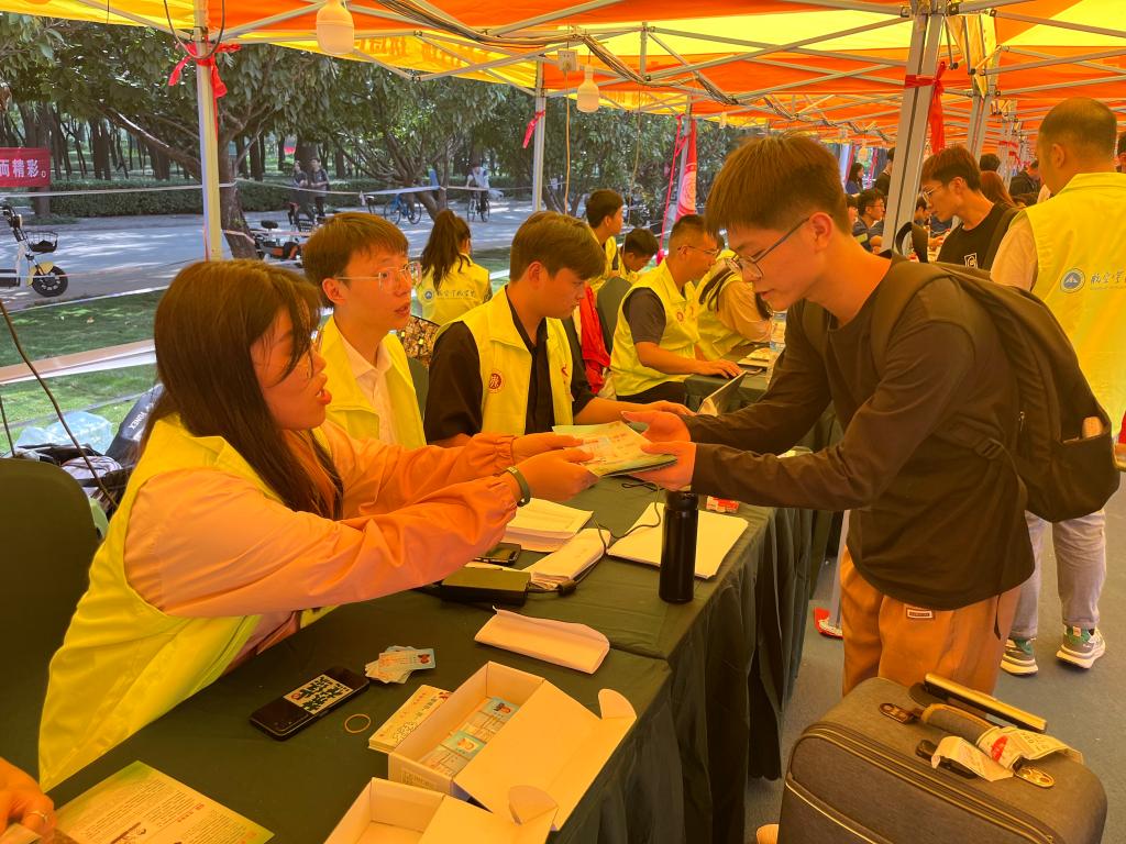 这个大家庭的温暖。大家以优质的服务去迎接新生,耐心地与家长沟通,领着 23级新生穿梭于报名登记、领取饭卡、军训服、宿舍楼等新生办理入学手续必经的各个地点。在整个迎新工作中,大家保持了一贯的严要求,高标准,努力做到热情、细致、周到、规范、有序,赢得了新生及家长的一致好评。