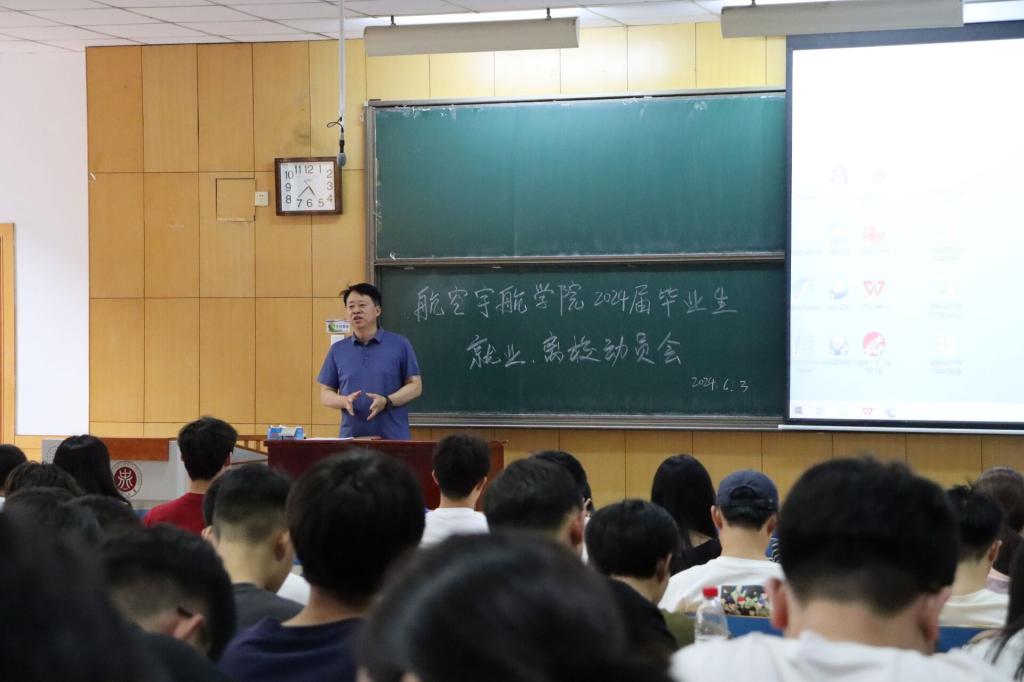 在11208教室举行了2024届毕业生就业及离校动员会。学院党委书记罗建国、毕业班班主任张丽花、学院就业辅导员王姣及全体毕业生参加会议。