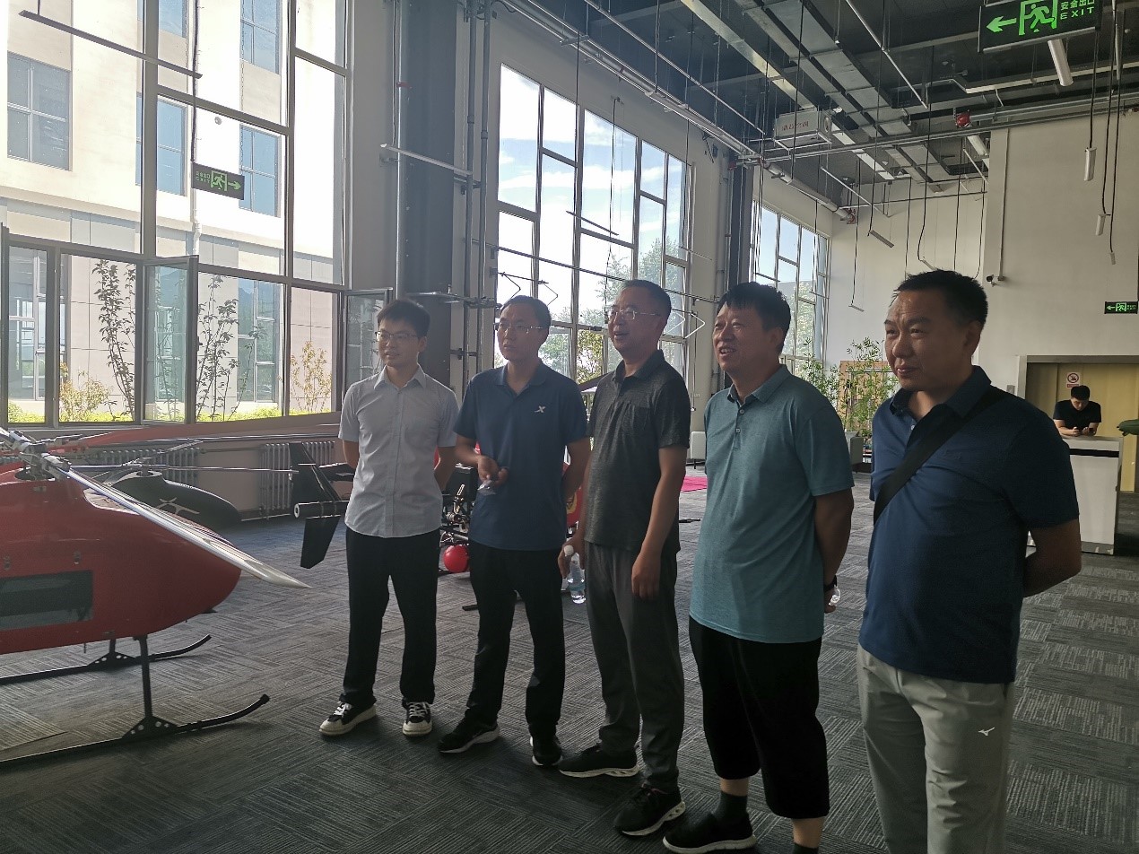 调研组一行来到北京清航紫荆装备科技有限公司,了解企业发展历程、产业规模、生产经营状况等,详细观摩了交叉双旋翼复合推力尾桨无人直升机的结构组成、部件生产、总体组装、试飞等。